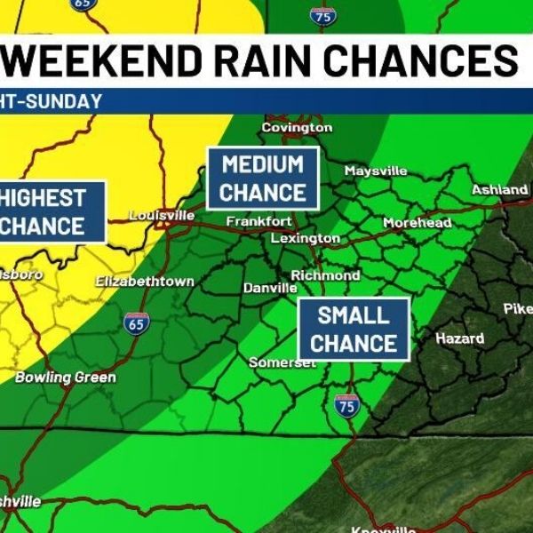 Friday: Highs reached 90° in western Kentucky, with low-to-mid 80s across central and eastern regions.